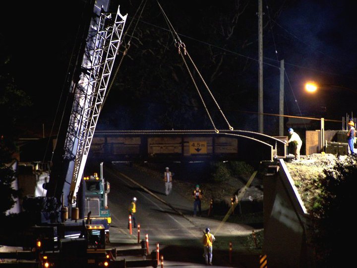 Talk about heavy lifting. In a middle-of-the-night operation crews removed the old  rail trestle at Four Mile on the Island Highway in View Royal on August 19. Twelve nights later they replaced it with a new steel rail bridge beam and two concrete beams for the new E&N Rail Trail, a multi-use path connecting Victoria with the West Shore.